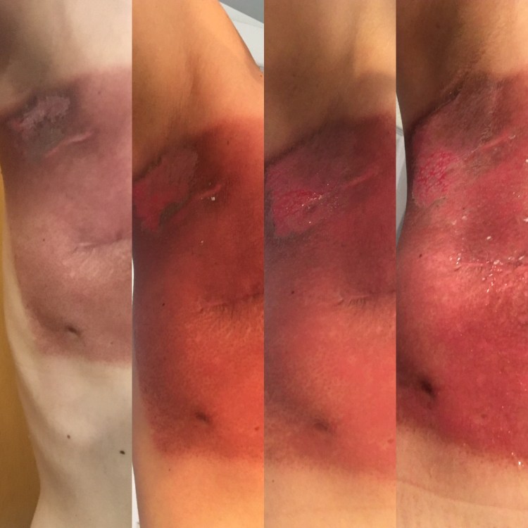 4. Oh mama, I had no idea 😢😢😢. That looks and sounds so incredibly painful that I can almost feel the pain myself. You need to give yourself the space and permission to be bitchy right now…you’ve been through some horrible shit and now your skin is friggin burned to crap. Ouch! You’re alive and fighting and that’s all that matters. You aren’t expected to be perfect mom and wife right now. They all know your love for them runs as deep as the deepest part of the ocean so this is just a temporary state and you will come out of it and feel like you again. Sending all kinds of love your way Jess. ❤️😘👍🦄 (the unicorn is just because you are a magical creature, even if you don’t currently feel that way! 😊😜)